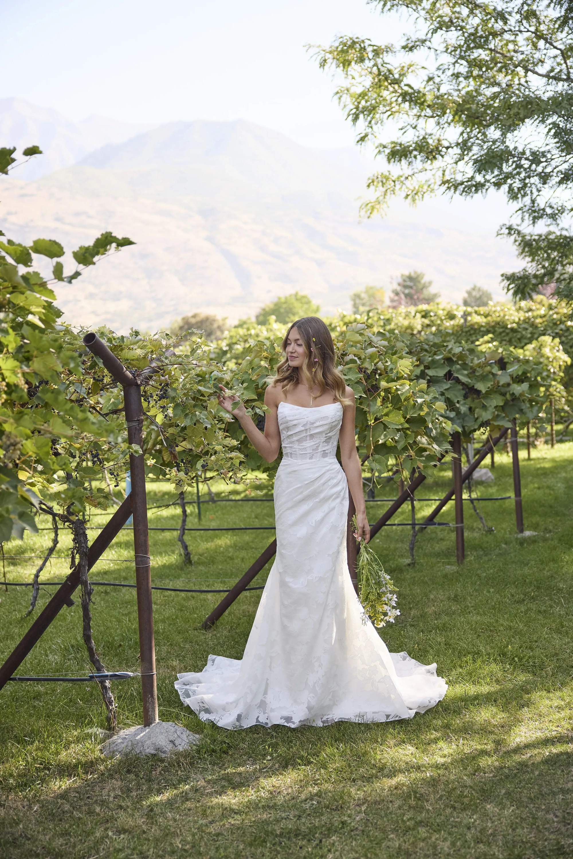 Kendall Elegant Printed Organza Cat Eye Neckline Sheath Wedding Dress