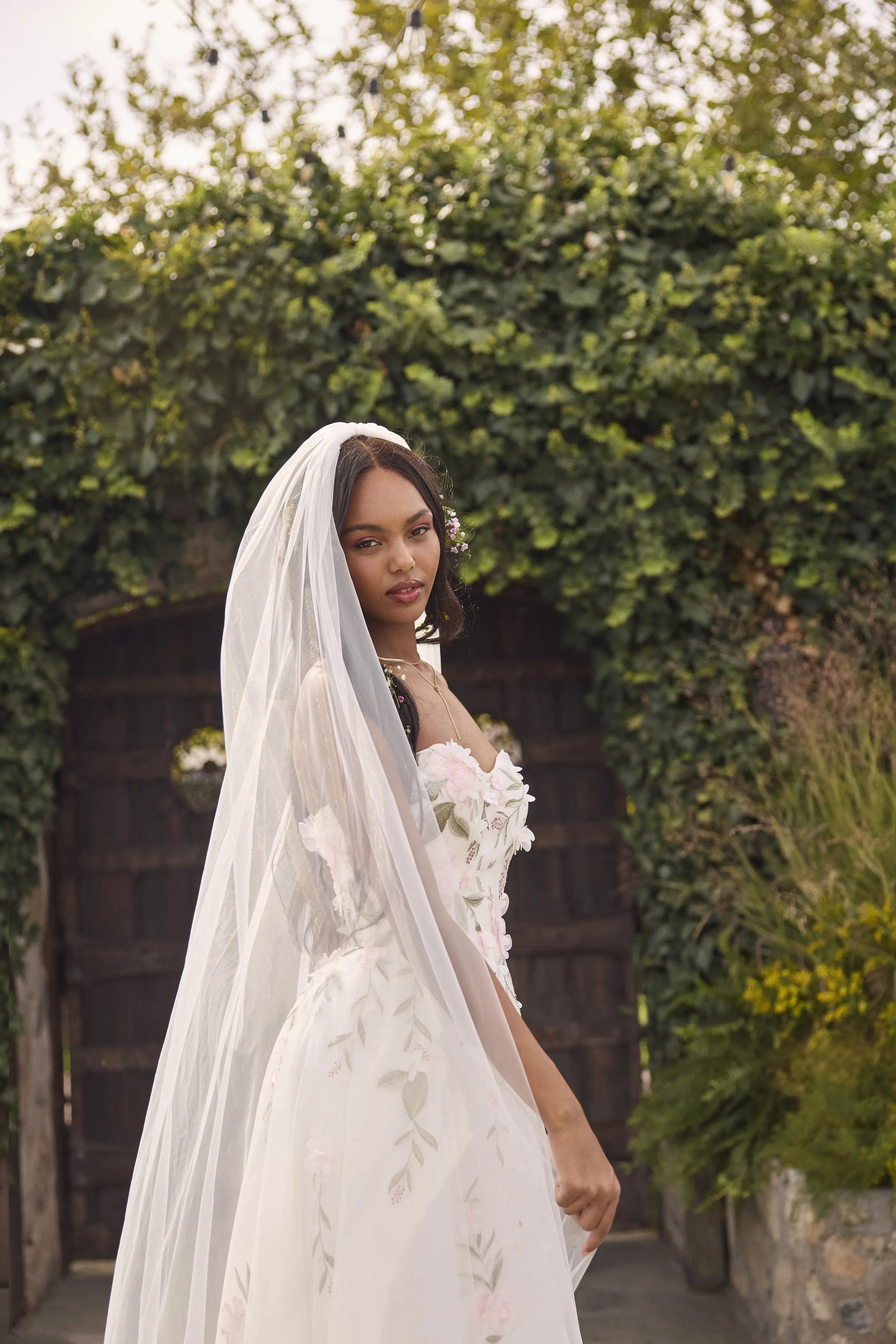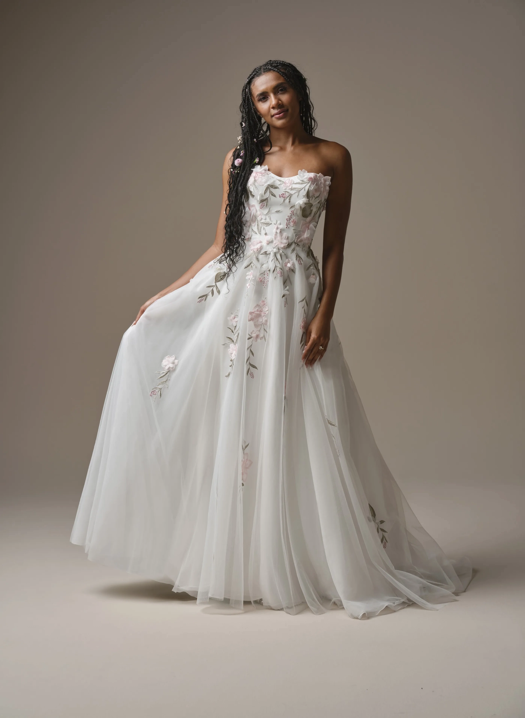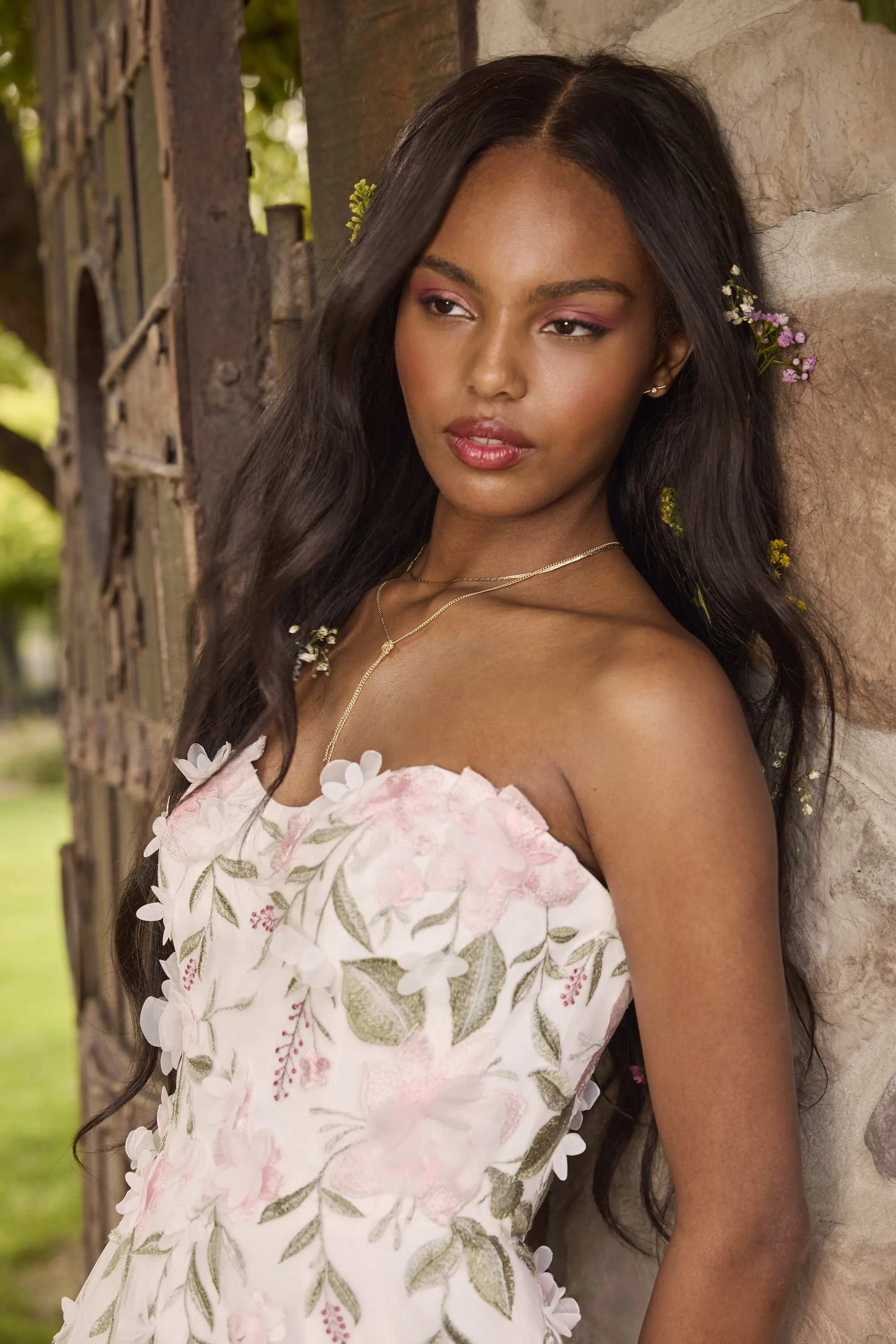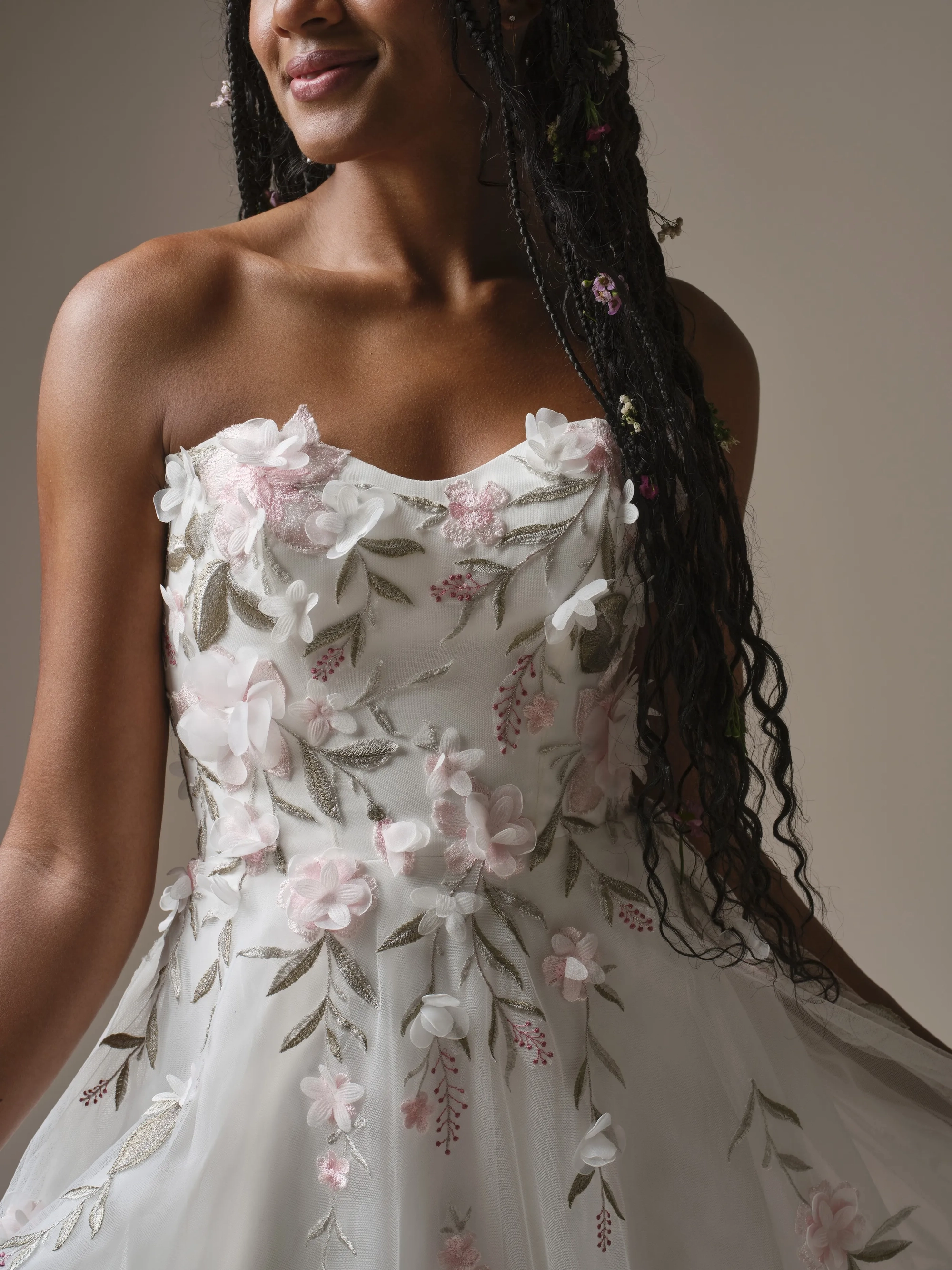Blossom Enchanting Strapless 3-D Floral Lace A-Line Wedding Dress