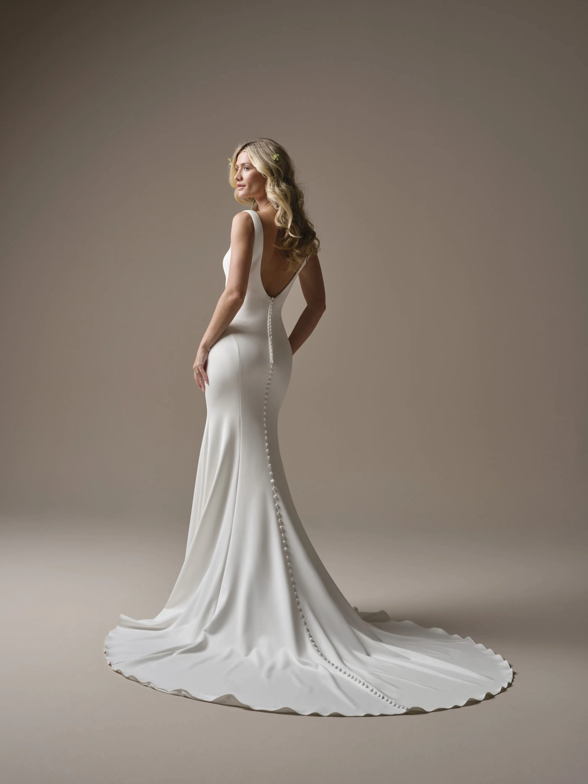 Lucille Sleek Soft Scoop Neckline V-Back Sheath Wedding Dress