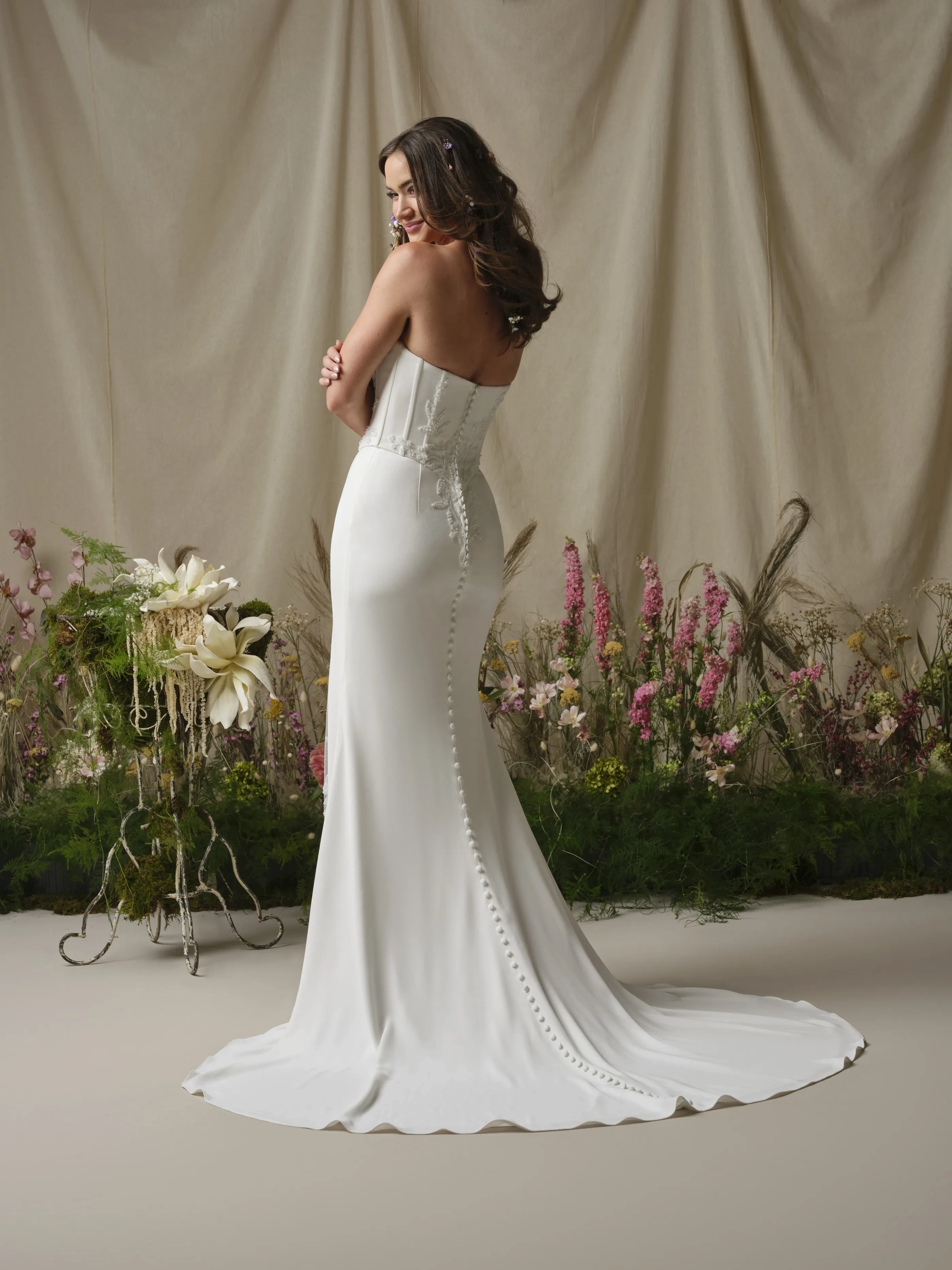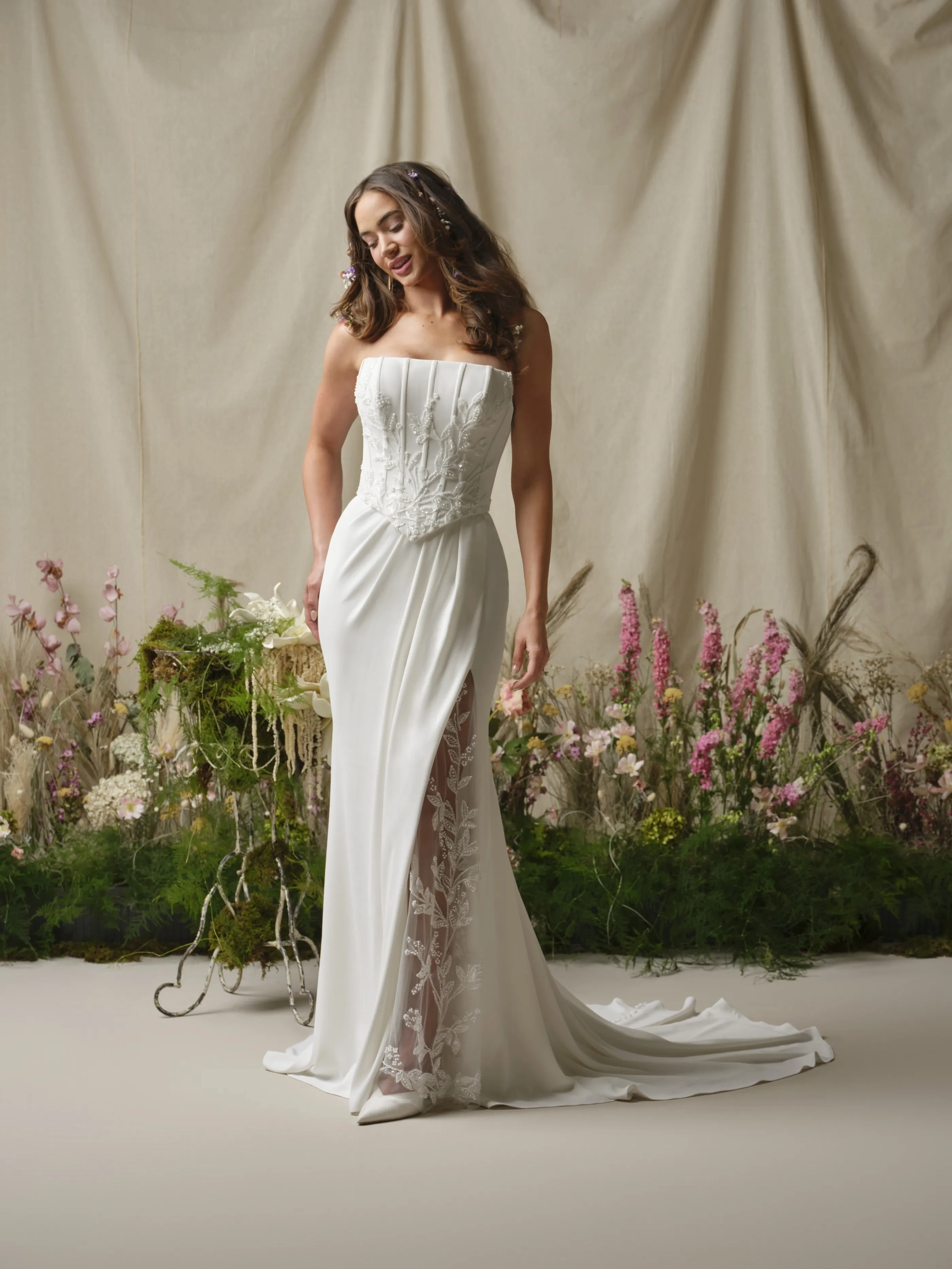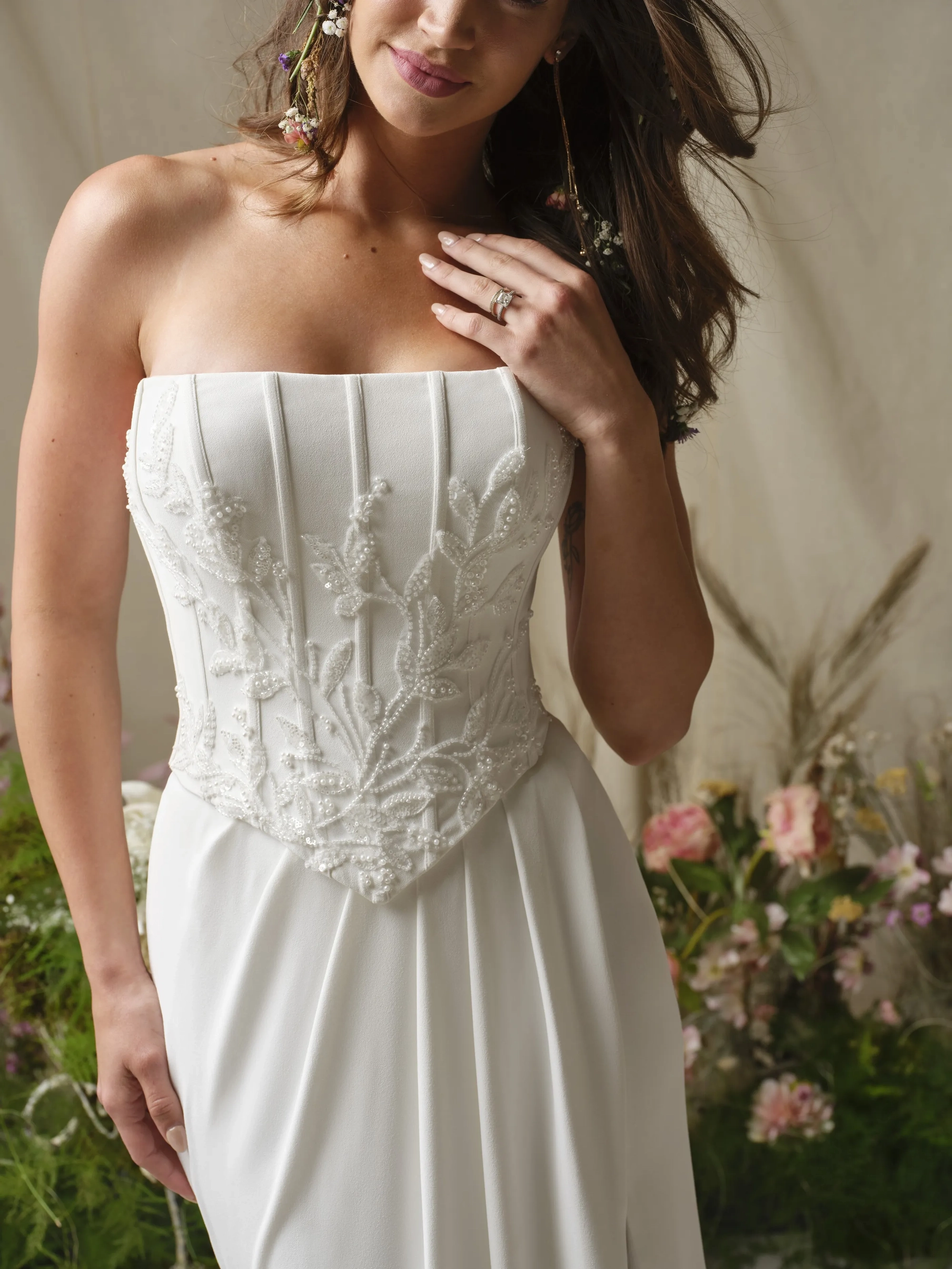 Terry Bold Mock Two-Piece Side Slit Beaded Bodice Sheath Wedding Dress